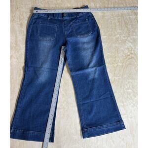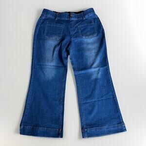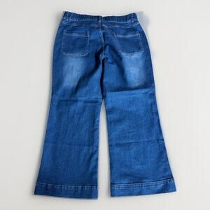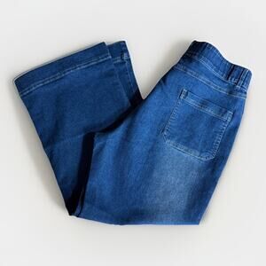 Women’s Pull-On Wide Leg Jeans Size L Elastic Waist Stretch Denim Dark Wash