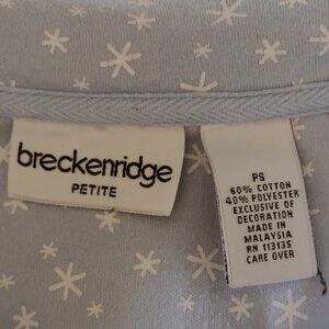 This is a WOMEN'S 1/2 ZIP PULLOVER PETITE SMALLWINTER SWEATER by BRECKINRIDGE. The sweater is in EXCELLENT CONDITION with a METAL SNOWFLAKE ZIPPER PULL and sewn in character patches