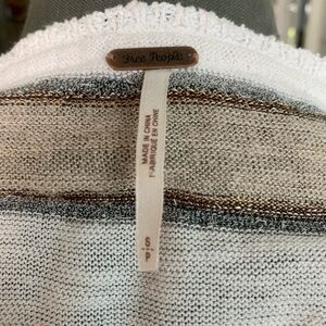 Discover the chic comfort of the Women's Pullover FREE PEOPLE Love Me Too Dolma Knit Sweater. Designed with a relaxed fit and V-Neck, this boho sweater is perfect for cozy lounge wear or casual daily outings. Featuring a trendy drop shoulder top, this sweater comes in White, Beige, and Grey colors, offering a versatile addition to your wardrobe. Crafted from 36% Cotton, 36% Linen, and 17% Polyester, it promises a soft touch and durability. Size S with an approximate full length of 25”. Pre-loved and in good plus condition, this knit sweater is a sustainable choice for fashion-forward individuals. #FREEPEOPLE #Dolma #VNeckSweater #BohoSweater #RelaxedFit #WomensPullover #KnitSweater #CottonSweater #LinenSweater #SustainableFashion. Embrace a touch of #bohemian charm and #style with this cozy pullover, perfect for adding a layer of warmth and texture to your outfit.