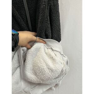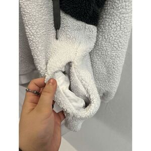Womens Pullover Fuzzy Half Zip Hoodie Sweatshirt Gray White Sz XL 100% Polyester