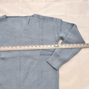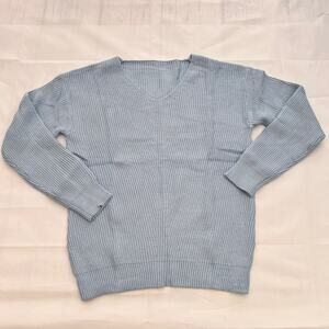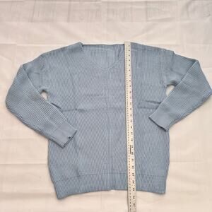 Koinshha Women's Fall Winter Pullover Sweaters Sexy V Neck Solid Color Cozy Loose Ribbed Knitwear Blue Sweater Size M