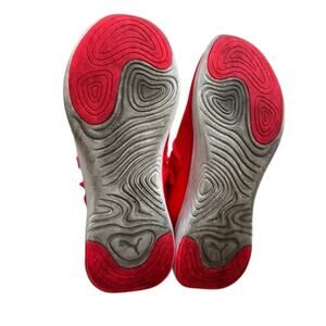 Get ready to hit the ground running with these vibrant Puma running shoes! The bright pink and peach color combination is sure to turn heads, while the comfortable design will keep you going mile after mile. These shoes are in good condition and ready for a new home. Don't miss out on the opportunity to add a pop of color and performance to your workout wardrobe! These shoes are a women's size 6.5. They have some wear on the tread but still have some life left in them.