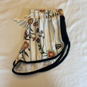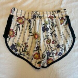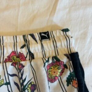 Women's Shorts, Puma, White and Black Striped with Colorful Floral Pattern, Soft Material, Women's Size Small (S), Drawstring Waistband
