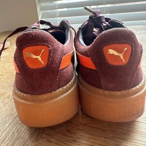 Women’s Puma Suede Platform Trace Sneakers in “Winetasting Flame”
