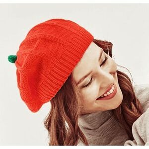 🎃 Women's Pumpkin Decor Halloween Knitted French Style Cute Beret Hat NEW