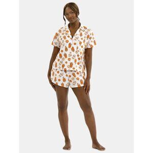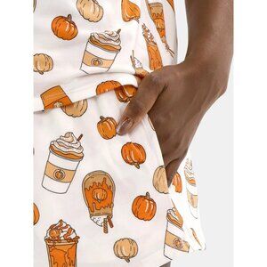 Womens Pumpkin Spice Print 2-Piece Pajama Set Medium 8-10 Top & Shorts