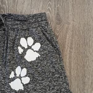 Women's Puppy Paw Print Black/Gray Elastic Waist Shorts Size M. Preowned-gently used. No brand name. Light weight 65% cotton 35%polyester.