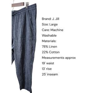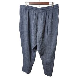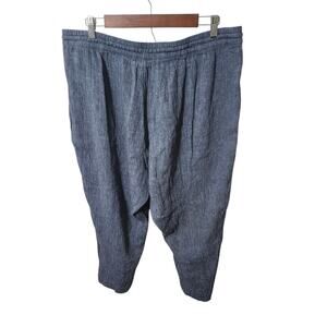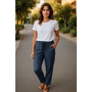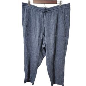 Womens Pure J Jill L Linen Pants Garment Cropped Blue Straight Leg Drawstring