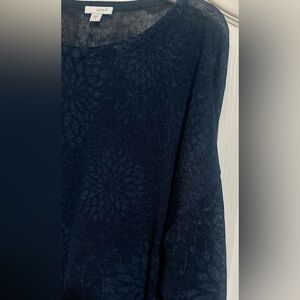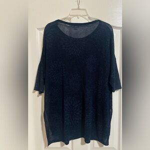 Women’s Pure Jill Linen Blend Navy Blue Floral Sheer Top. Size Medium.