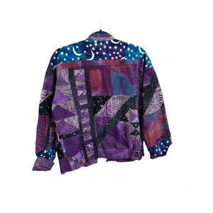 Women's Purple & Blue Long Sleeve Open Front Multi Pattern Jacket One Size