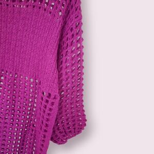 Womens Purple Crochet Knit Sweater Dress Midi Pullover Long Sleeve Open Knit OS