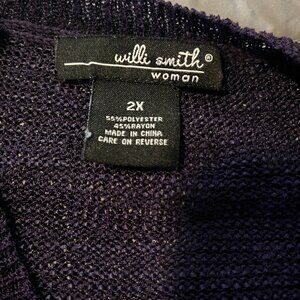 Women's Purple Long Sleeve Top 2X. Excellent pre-owned condition. Top is a little sheer. Small pocket on each bottom side. 55% polyester, 45% rayon. Willi Smith Woman brand.