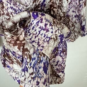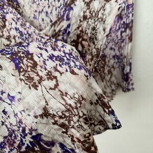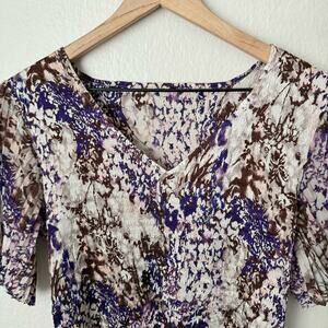 Womens Purple Multi VNeck Blouse Short Sleeve Lightweight Stretch Top Size Small