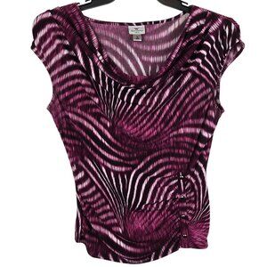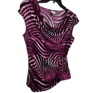 Women's Purple Pink Tone Y2K Revival Psychedelic Edgy Club Abstract Blouse Top M