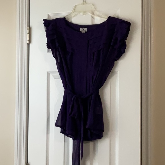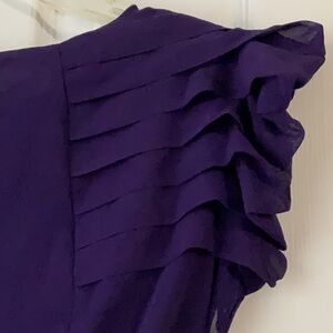 Elegant women's top featuring a rich purple hue and stylish ruffles, includes matching cami. This top has never been worn and still has the price tag on it, size M.