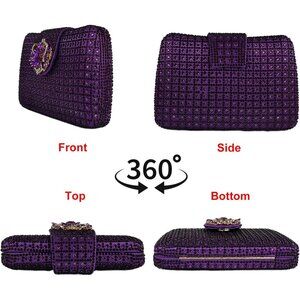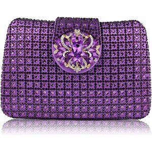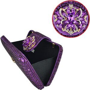 Women's Purple Sparkly Rhinestone Unique Evening Floral Clutch Shoulder Handbag