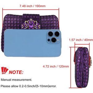 ◆Size & Capacity.◆ Dimensions: L7.48 x H4.72 x W1.57 inches, about 19 x 12 x 4 cm.Handle length: 7.87inch (about 20cm). This women's evening bag can hold your mobile phone, lipstick, keys, foundation case, small mirror, other small things.