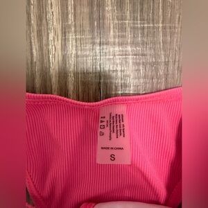 Women's Push Up Spaghetti Straps High Waisted Two Piece Swimsuit Hot Pink Small