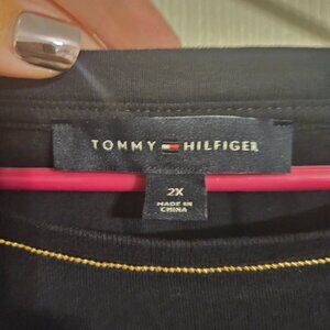 Cute women's quarter sleeve top. Navy blue with gold detail on the neckline.