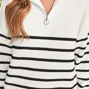 Women's Quarter Zip Striped Oversized Sweater for Fall
