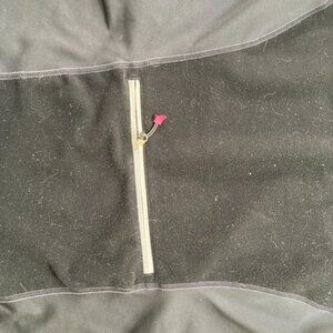 Fine microfleece; optional finger mitts folded into sleeve cuff; back zippered pocket.