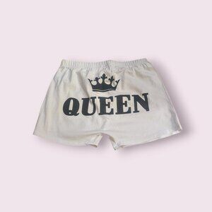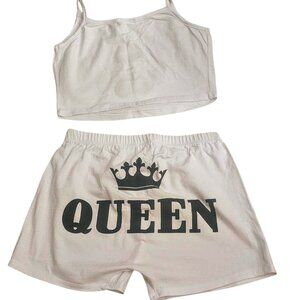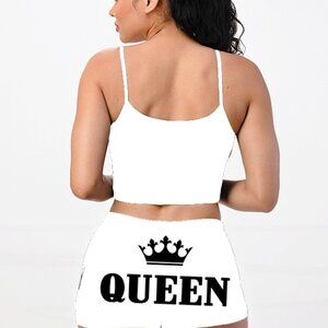 Feel like royalty every night with our Women's Cami Short Set featuring a bold "Queen" design. Made from soft, breathable material, this set includes a stylish cropped cami with spaghetti straps and matching shorts, ensuring both comfort and a flattering fit. The eye-catching "Queen" graphic adds a touch of empowerment and confidence to your loungewear collection. Perfect for relaxing at home or unwinding after a long day, this set combines sexy style, and comfort. It's the perfect blend of cute, comfy, relaxed self-expression of the queen you are!