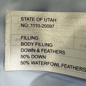 Side pockets Navy with light blue inside 100% polyester 50% down 50% waterfowl feathers