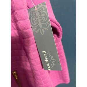This vibrant orchid pink quilted jacket by Passports combines comfort and practicality. Crafted from a soft cotton-polyester blend, it features a flattering full-zip design, gold-tone zipper accents, and a structured silhouette. Ideal for layering, its medium weight and cozy texture provide warmth and style for casual outings or cool weather.