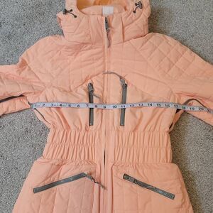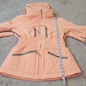 Stay stylish and warm with this chic peach quilted jacket. Perfect for any occasion, this jacket combines comfort with a trendy design.