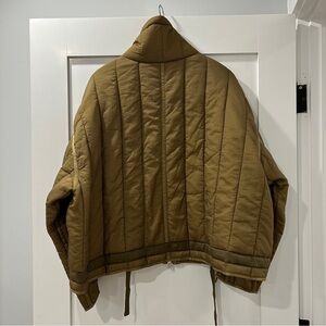 Stay stylish and warm with this olive quilted jacket. Perfect for any occasion, this jacket combines comfort with a sleek design.