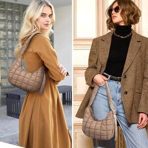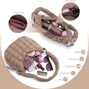 Features: This cute puffy tote is made of soft polyester with plush padding, making it super comfortable to carry. It measures around 12.6 x 9.8 x 2.7 inches — enough room for your iPad, wallet, keys, makeup, and more without feeling bulky. The main compartment has an internal zipper pocket and slip pocket for organization. Can be worn as a crossbody or shoulder bag thanks to the padded, adjustable straps, which help relieve shoulder pressure. The quilted design adds a chic touch that works with casual and dressier outfits.