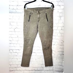Rag & Bone Jean Moto Skinny Jean Gray Straight Leg Size 31 Suede Calves.
