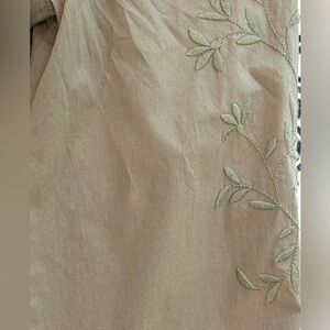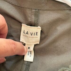 Women’s REBECCA TAYLOR LA VIE Olive green embroidered poplin dress- Size Medium. Excellent used condition, one small discolored spot on sleeve— see photos. Very well hidden. Smoke free home. Fast shipping