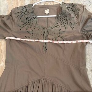 Women’s REBECCA TAYLOR LA VIE Olive green embroidered poplin dress- Size Medium