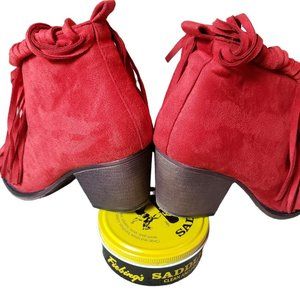 Womens RED Center Cut Fringe Ankle Booties. Size 11