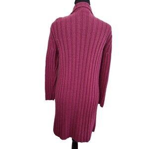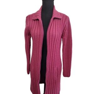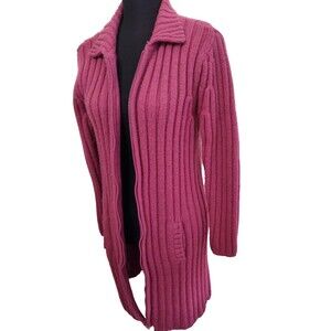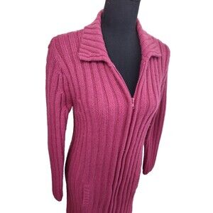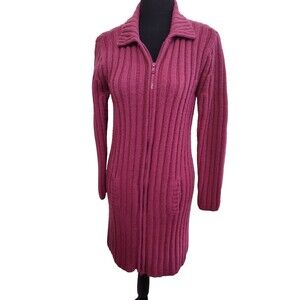 Women's REVUE Fuchsia dark Pink Wool Long Sweater M Full Zipper Pockets Vintage