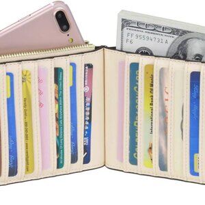Women's RFID Blocking Genuine Leather Multi Card Organizer Wallet with Zipper Po