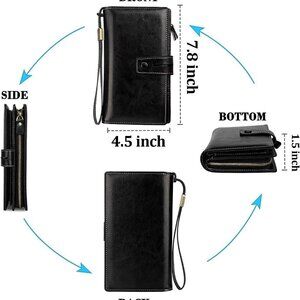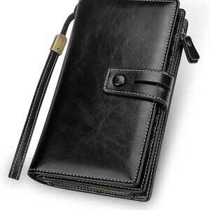 Women's RFID Blocking Leather Wallet Clutch Large Phone Organizer Wristlet