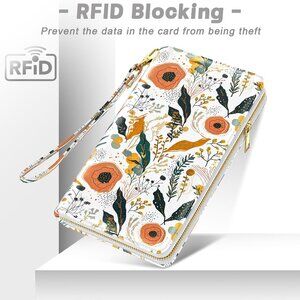 Womens RFID Wallet Wristlet Clutch Purse Large Capacity Phone Holder