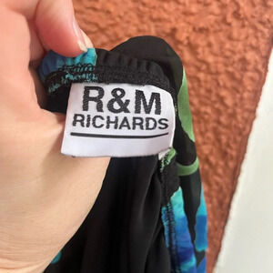 Women’s R&M Richards Hawaiian Floral Layered Midi Skirt Size 16 Black Green Blue
