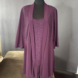 Women’s R&M Richards Purple 2 Piece Formal Pant Suit 3/4 Sleeves Size 16W *READ