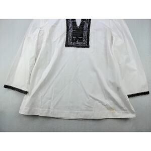 Womens RSVP By Talbots Beaded V Neck Long Sleeve Shirt Size XL White & Brown