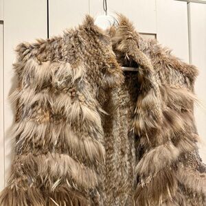 Stay warm and stylish with this luxurious rabbit and raccoon fur vest. Perfect for layering, this brown vest adds a touch of elegance to any outfit.