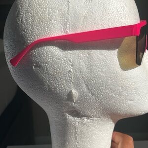 Oversized shield-style sunglasses. Made with lightweight plastic frame in a pink color with colorful lenses. UV protection lenses help shield eyes from the sun's harmful rays. New without Tags. Never Worn Great Condition. Lens free from scratches.