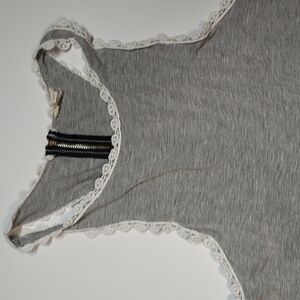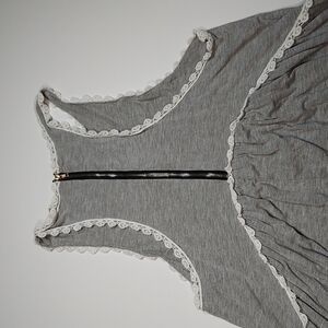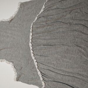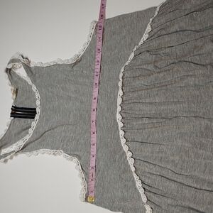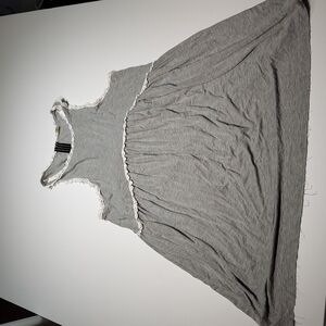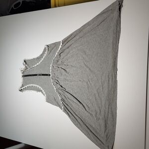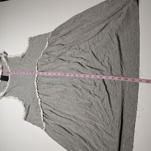 Women's Racerback Babydoll Tank Dress - POL Clothing Heather Gray and white border. Very soft material. Item is in great condition. Made with 60% Cotton, 35% Polyester, 5% Spandex. Has Stretch. See photos for measurements.
