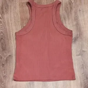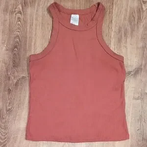 Elevate your style with this chic sleeveless ribbed top in a warm rust color. Perfect for casual outings or layering.