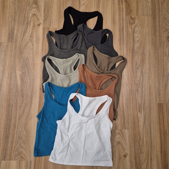 Earth tone crop tops. Purchased on Amazon. Soft cotton/spandex blend.