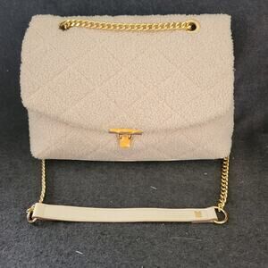 Women's Rachel Zoe Beige Quilted Leopard Lining Gold Chain Top Handle/Shoulder P
