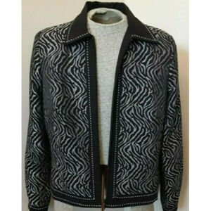 Women's Rafael Gray/Black Animal Print Lined Zip Blazer - Size 12. L 21.25" Bust 21" Sleeve