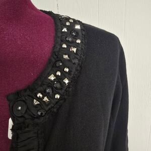 Women's Rafaella Black Beaded Collar 3/4 Sleeve Snap Close Cardigan - Size Large